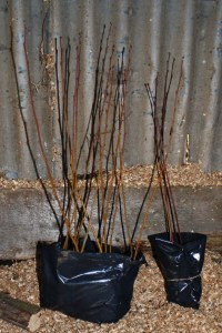 I went straight on to http://www.treesbypost.com and spent my last forty pounds on fifteen silver birch whips. I was rather galled to find that most of that price was taken up with plastic tree guards, but with roe deer running rampant on the most likely spots on the farm, it was a grim necessity. The miserable delivery driver couldn’t find my house and dumped the whips at the road end in the snow and now I have them; an unimpressive bundle of red stalks. They seem a long way away from being any use to anybody, but time will tell.