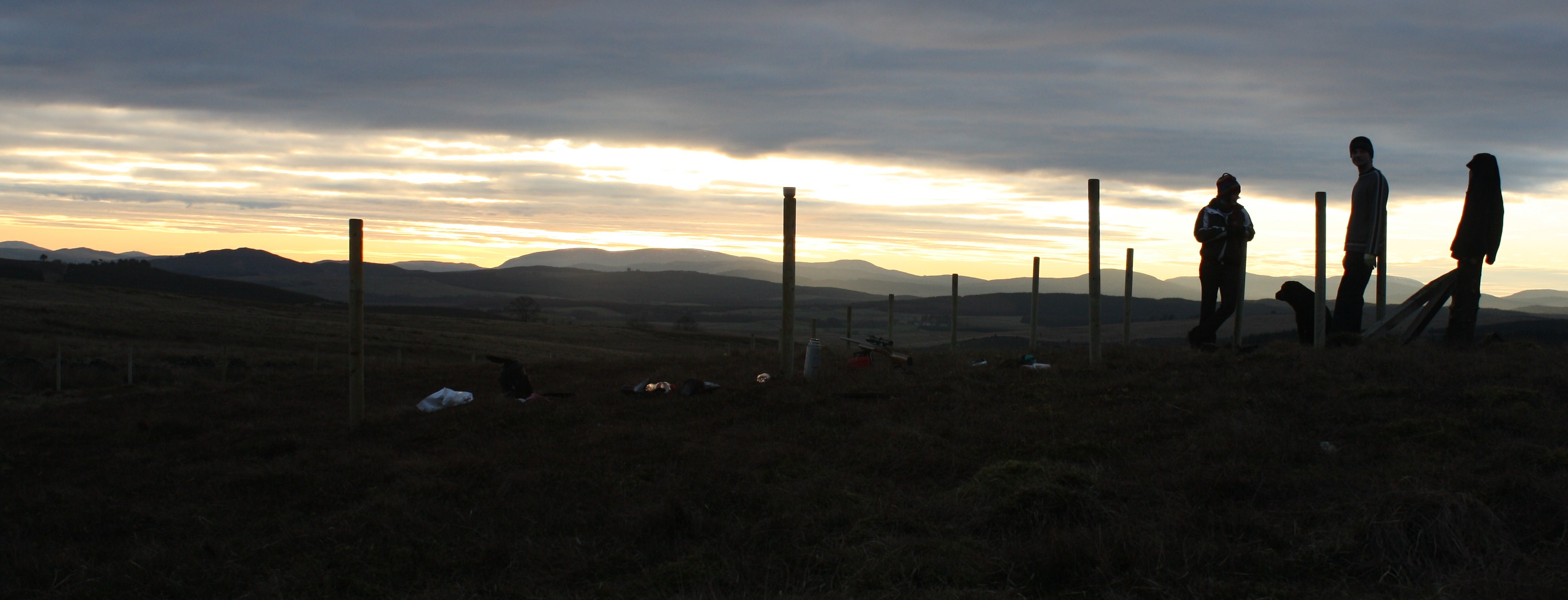 Today, I have been digging strainers, cutting stells and lining up stobs for an area of heather around the size of a tennis court. Along with a couple of friends, I installed one eight foot straining post, eight six foot stells and forty two five foot stobs, and while I must admit that it was very satisfying to see the foundations for what will become my “heather laboratory” coming together, the fact that it took us four hours now seems incredible.