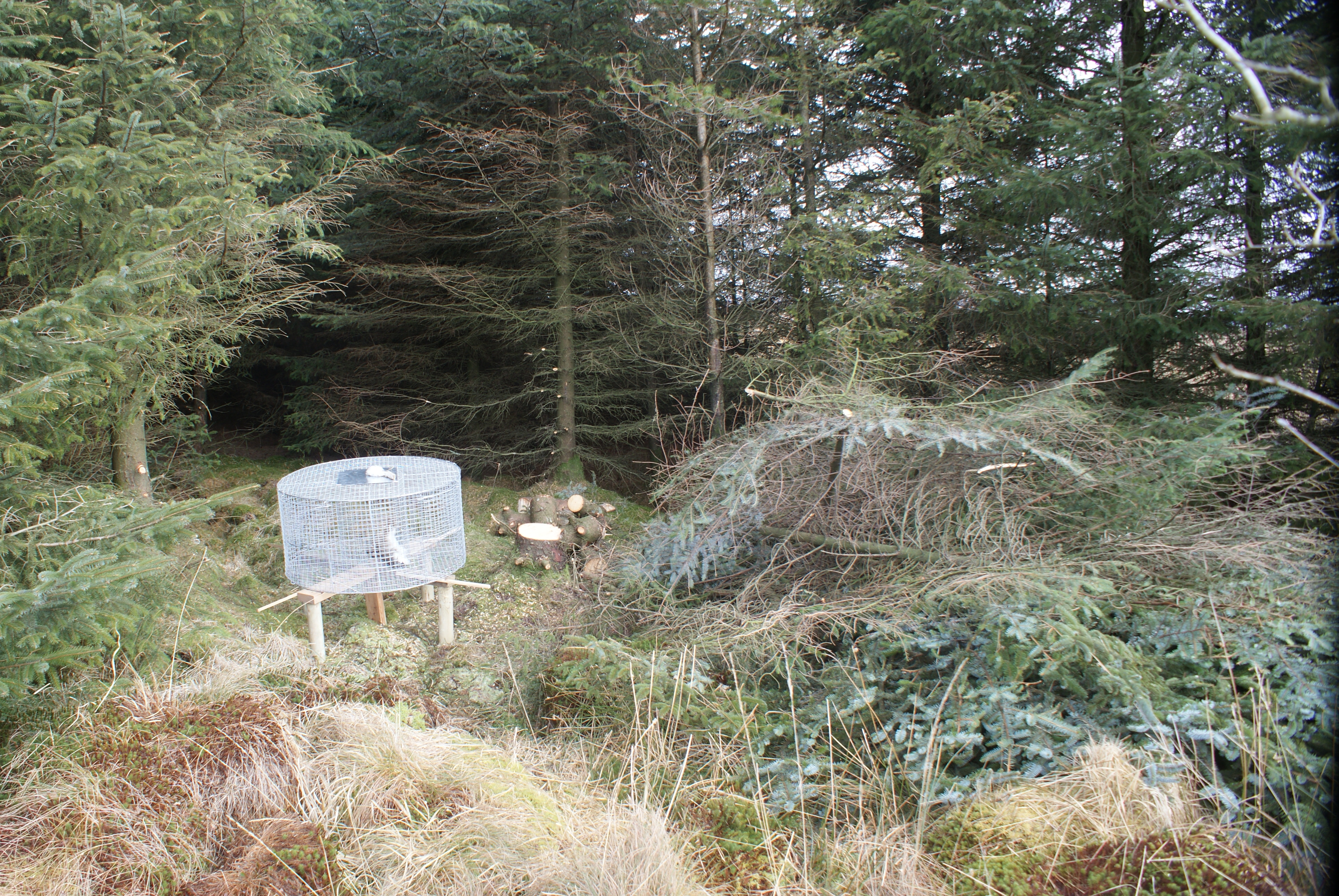 On my way up to the Chayne, I collected a freshly killed rabbit from the verge of the main road and cut it into quarters. I left a hind leg on the roof of the trap, another on a nearby gatepost and I placed the remainder of the body in the largest catch compartment. In the time it took me to walk five hundred yards, build a simple style for the new heather enclosure and return, a fox took the leg from the gatepost. A telltale line of tufted fluff led off into a thick patch of trees, and I wished that I had kept an eye out with the .243. With so much vermin going around, it is simply a matter of time before the new trap starts to make an impact.