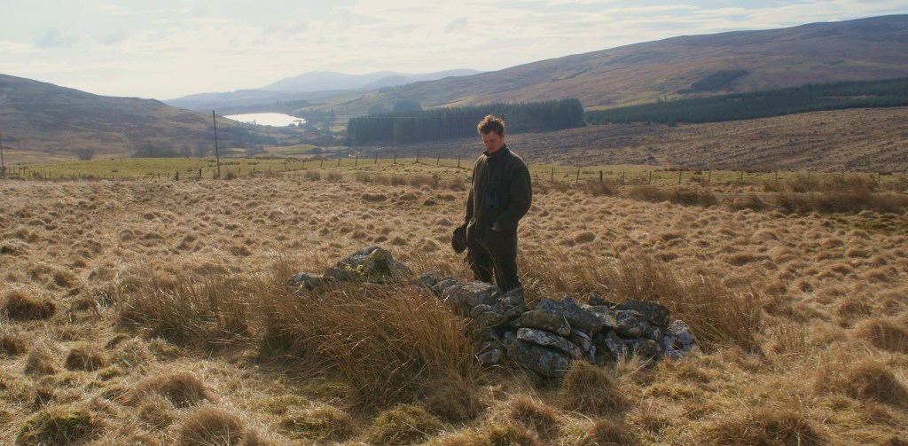 Andrew mentioned in passing how the grouse butts had been allowed to crumble on Auchenbirk, but recommended that I pay them a visit for interest’s sake. Sure enough, walking through the deep grass this morning, Richard and I discovered a row of seven drystone butts, sadly disintegrating into the moor. Standing in the shattered enclosures, it was not hard to picture grouse blazing in over the low hillside ahead, cackling and tilting their wings in the wind. We both caught one another swinging onto the ghostly birds with imaginary shotguns. With the view out over Glengorse to the Lake District, it was hard to imagine a better spot for an afternoon’s sport, and while it was sad to see a once prosperous shoot rotting into ruin, it put extra fire in my belly to reverse the decline and bring the birds buzzing overhead once again.