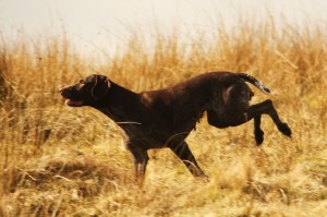 We set off on to the hill with high hopes. Within five hundred yards, we had made first contact. A cock and two hens rippled up into the breeze with a fearless cackle and buzzed over the stone wall to the neighbouring property. It wasn’t clear whose dogs had put them up, but my blood was pumping and I was desperate to see more. Two hundred yards further and I reached a low rise just in time to look down on a pair of chocolate brown shapes as they coursed over the grass ahead, turning slightly in the wind and vibrating with blurry wingbeats.