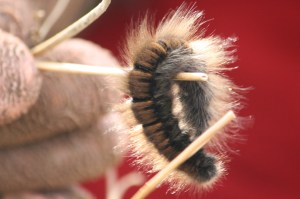 Insect life is booming on the Chayne, and the first swarms of midge are starting to swirl over the bogs. There is still frost at night, so I was surprised to find a number of caterpillars clambering along the grass stalks and over the heather this morning. Apparently fearless of attack from birds or animals, these bristling two and a half inch long cylinders seemed happy to blindly clamber across the moor.
