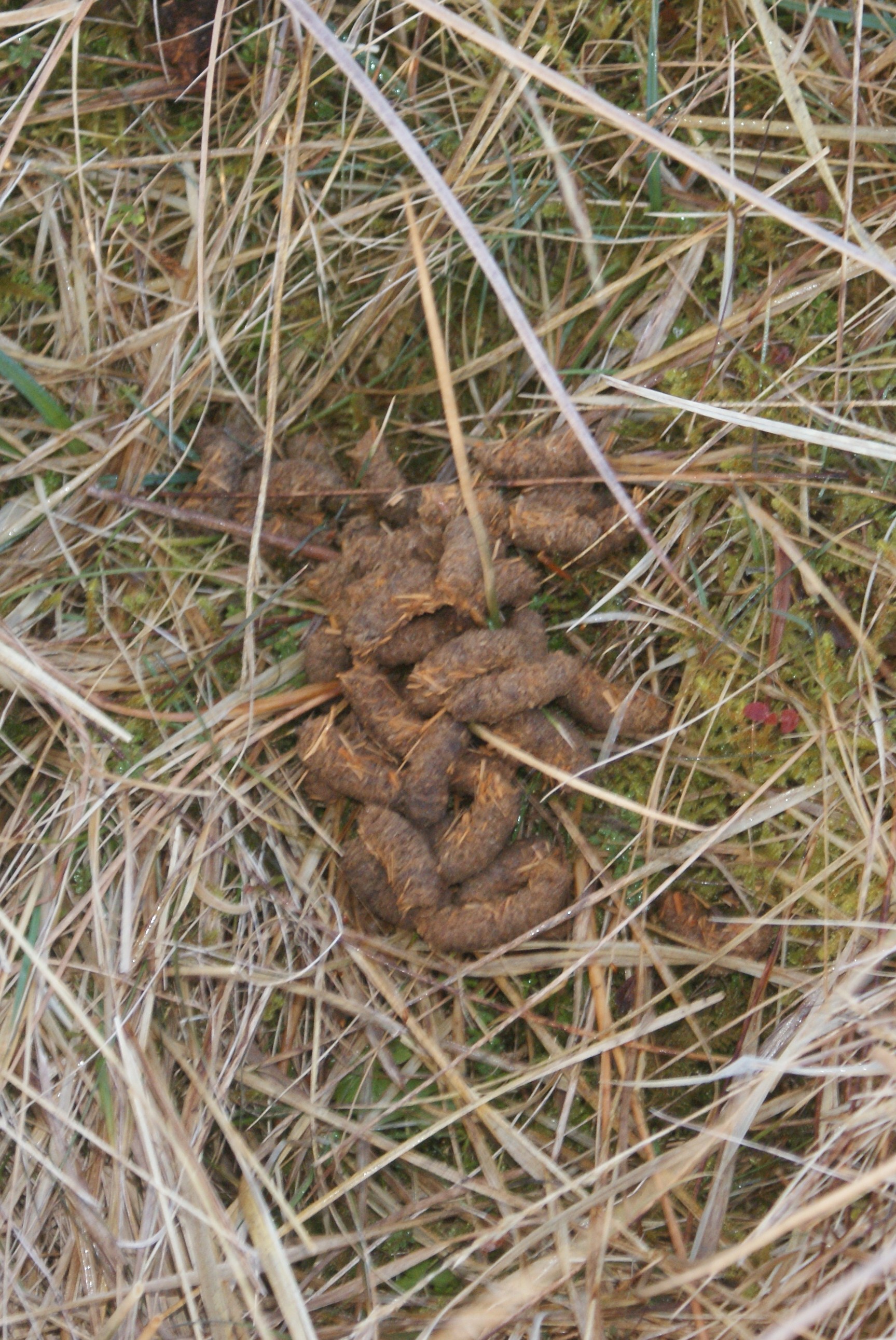 With only one out of six stations being used, it seems that I should have done some more research into where the birds are foraging before trying to leave supplies for them. When the NOBs conducted a grouse count last weekend, the majority of grouse were lying up in the same rough area; a damp bank of moss overlooking the neighbouring property. It never occurred to me to set up grit stations on that corner of the farm, but that’s surely where they would most appreciate it. The ground there is wet and mossy, but there is plenty of evidence to suggest that it is one of the most popular areas on the farm. Neat stacks of droppings lie crushed against the ground, and the occasional stripy feather marks where a bird has been preening.