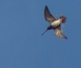 Eating a packed lunch by the side of the new birch plantation, I was treated to one of the finest aerial displays I have ever seen. Skylarks burble incessantly in the background, but through the general chaos of bird song, a noisy squeaking approached low over the moorland. Rather like the sound of a rusty bicycle being pedalled quickly downhill, the sound seemed mechanical and unexpectedly jarring. All of a sudden, two snipe appeared just thirty yards ahead and soared within feet of my head. They flew three hundred yards behind me, then returned for another fly-by.