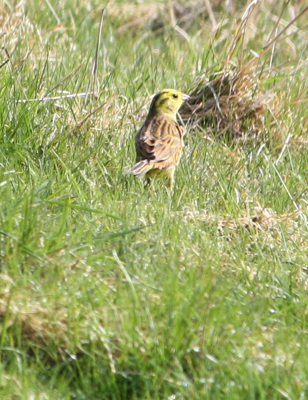Yellowhammers were once extremely common across the British Isles. Since 1988, their numbers have collapsed across their traditional strongholds, making them rarer and rarer each year. They certainly stand out against the greening grass, with dazzling yellow heads and an unfamiliar swagger. I was surprised to find that I had as much fun stalking and photographing this cock bird as I did on my near miss with the roe buck this morning.