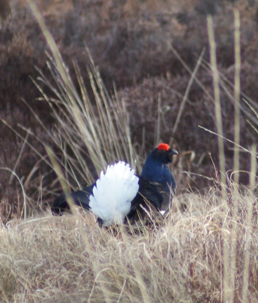 Even as we watched, the display petered out and the cocks separated. There was a moment of thrilling excitement when one took to the air and flew like a stunning and distorted pheasant over a low ridge. We listened to him land and start cooing again, this time out of sight. My black grouse book tells me that the peak of the display often takes place in the twilight before the sun rises, and it is probable that we missed the majority of the display. Still, if I had seen all twenty birds lekking at once I would have probably have blown a fuse with the excitement of it.