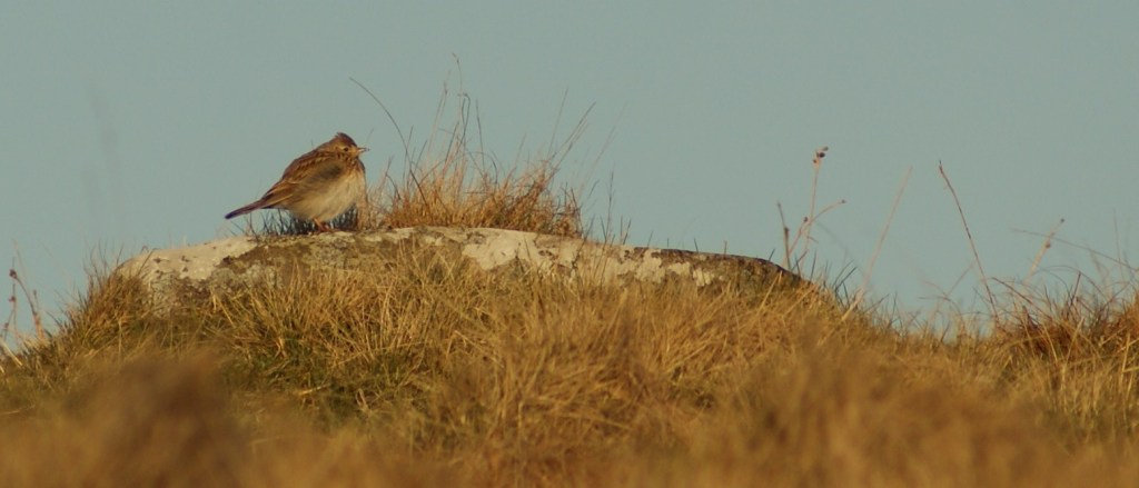 I include this post at this point because I was thrilled to finally take my first photograph of a skylark yesterday morning. I usually line up the shot, take the picture and then only realise in retrospect that it was actually a meadow pipit. Skylarks and pipits are extremely similar, although the larks have a tell-tale crest which is usually raised at this time of year.