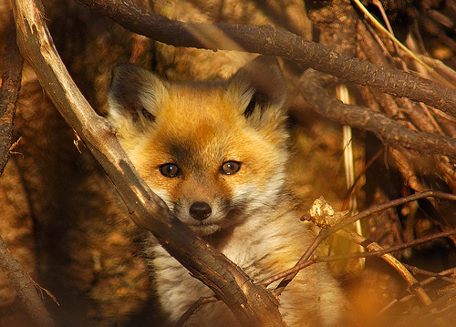 Just a mile further around the track, we spotted something glittering in the long grass around two hundred yards away. I got out and peered through .243’s sights, but everything was very indistinct. The eyes seemed very close together and whatever it was was moving very strangely. We drove closer. The eyes still twinkled and then it occurred to Richard that we might be dealing with a family of fox cubs. Sure enough, when we were eighty yards away, a tiny little head poked out of the rushes to peer at us. It was joined by another.