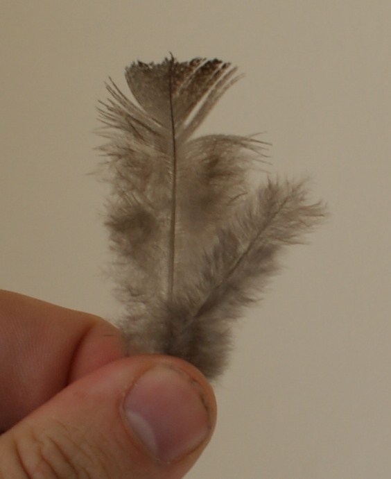 The feather was black with brown speckles, further confirmation that my bird is in his first year, but something more interesting caught my attention. Although I had never seen one before, all grouse species have “after shafts” in their body feathers. An “after shaft” is a downy appendage which grows parallel with the main outer feather, providing added warmth and insulation to the bird, and this feather was no exception. If he is still alive, my blackcock’s summer moult will be progressing well and by mid October, he should have his full adult plumage.