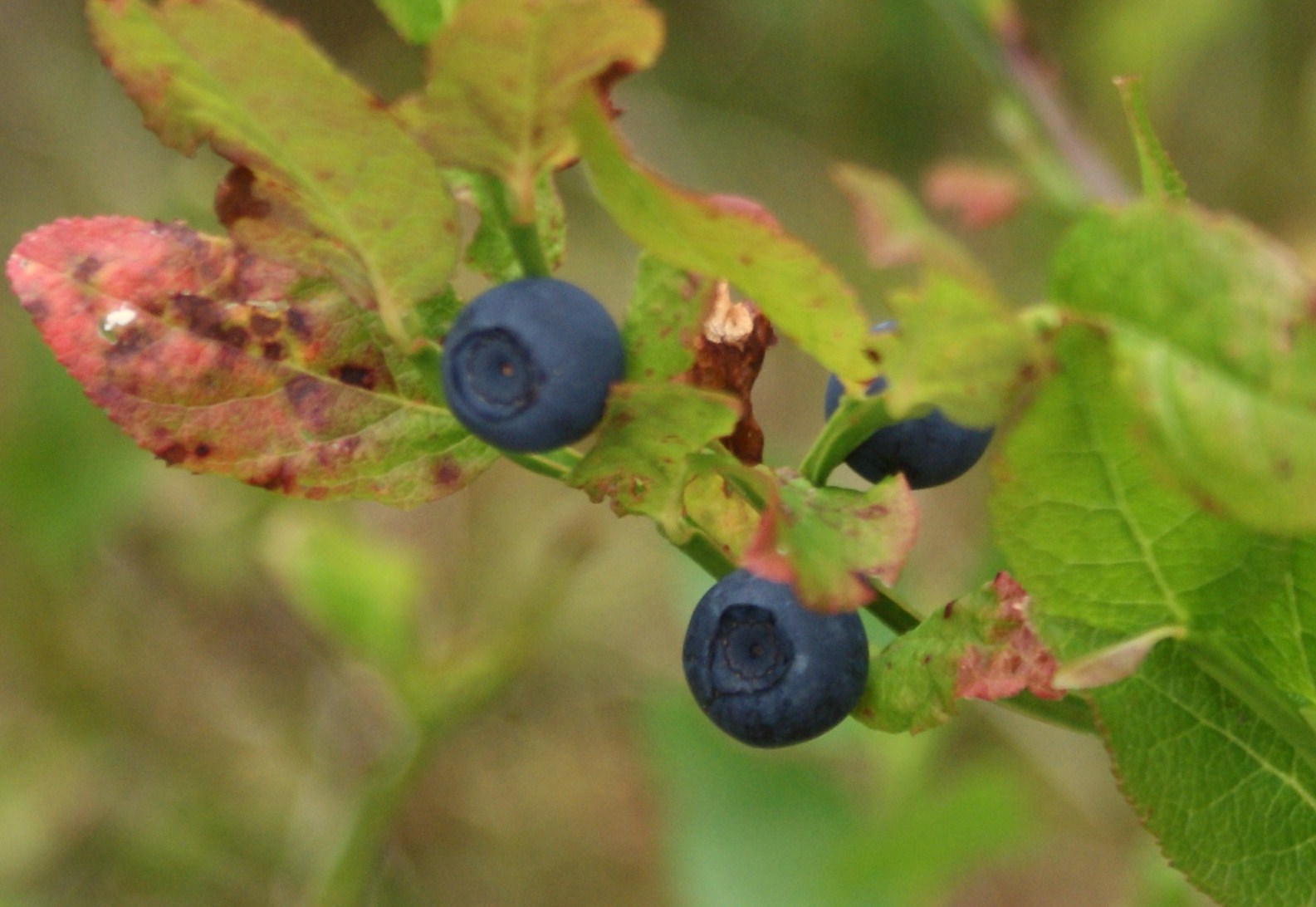 When I took the chainsaw up for another go at the trees yesterday, I found berries on some of the plants that I uncovered in the spring and which would have probably faded away into nothing without my help. I pushed a way into the woods and found a large patch of blaeberry which was almost choked to death by the shade of the trees overhead. Blaeberry doesn’t usually grow to be very tall, but some of these shoots were almost two and a half feet high. They had had so little light that they hadn’t produced berries, and many of the plants were brown and woody. I cleared three trees and brashed a path to the boundary of the wood where I found a massive pine completely smothering a nice rowan tree. Within half an hour, I had knocked the pine over (although it fell onto the fence and crushed a fencepost into sawdust – oops) and freed the rowan, leaving a nice path through thirty yards of trees, which will hopefully now fill up with healthy blaeberry plants.