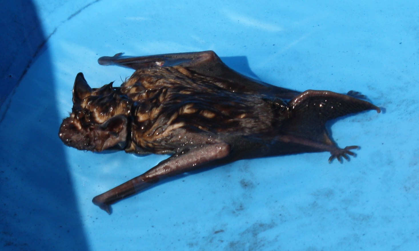 I normally love bats, but this one was different. Everything about it seemed foul and nightmarish; its movements were sluggish and unnatural and its hair was matted together in thick clumps. I had to overcome some fairly nauseous feelings before I came to terms with the fact that I was looking at a drowning animal and it needed to be rescued. Grabbing it with a towel, I slung it into an old box and put it in the shed to warm up a little.