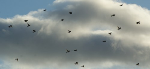 Out on the moor, the undergrowth is changing again. From a rich, rusty red at the start of the month, the grasses are losing their brilliance and have sunk back into the obscurity of a moderate beige. The ling still has a few gnarled flowers, but these are all crispy and chocolate brown. Far out in the open of the moor, I bent down to examine some cross leaved heather and heard an odd chirrup behind me. As if they had emerged from nowhere, seventy fieldfares steadily buzzed their way overhead, calling and fluttering alternately. Fieldfares, starlings and redwings are all good signs of the changing seasons, and judging by the stinging westerly wind, winter’s on the way.