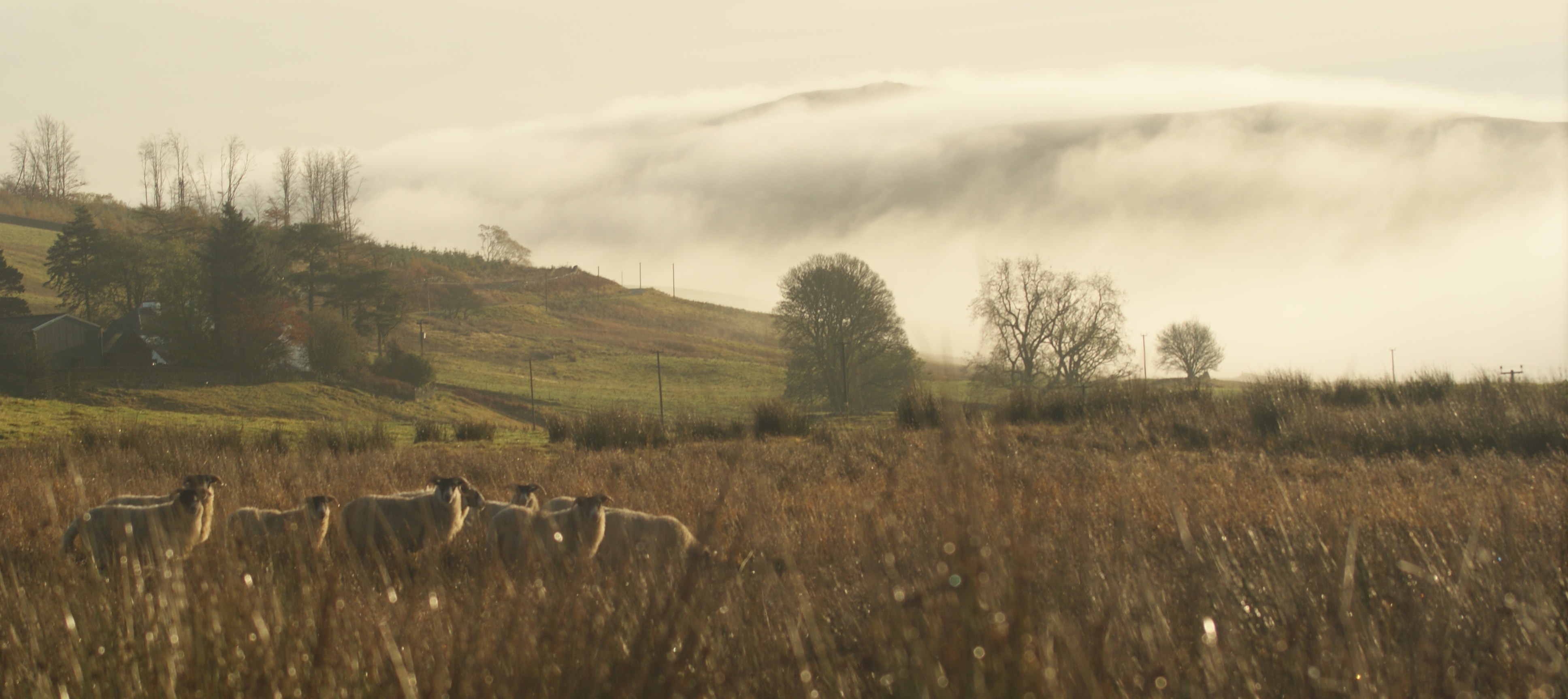 It seemed like it was about time to do another dawn patrol around the Chayne after several weeks of neglecting my duties, so I got up at seven o’clock this morning and put the .243 into its sleeve. Stars still lurked overhead, but as the car headed further and further up to the high ground, thick banks of fog started to sweep in from either side. Deciding that it was just patchy enough to carry on regardless, I pulled up into the farmyard at 7:15, just as a giant wall of bleak condensation swept in from the east.