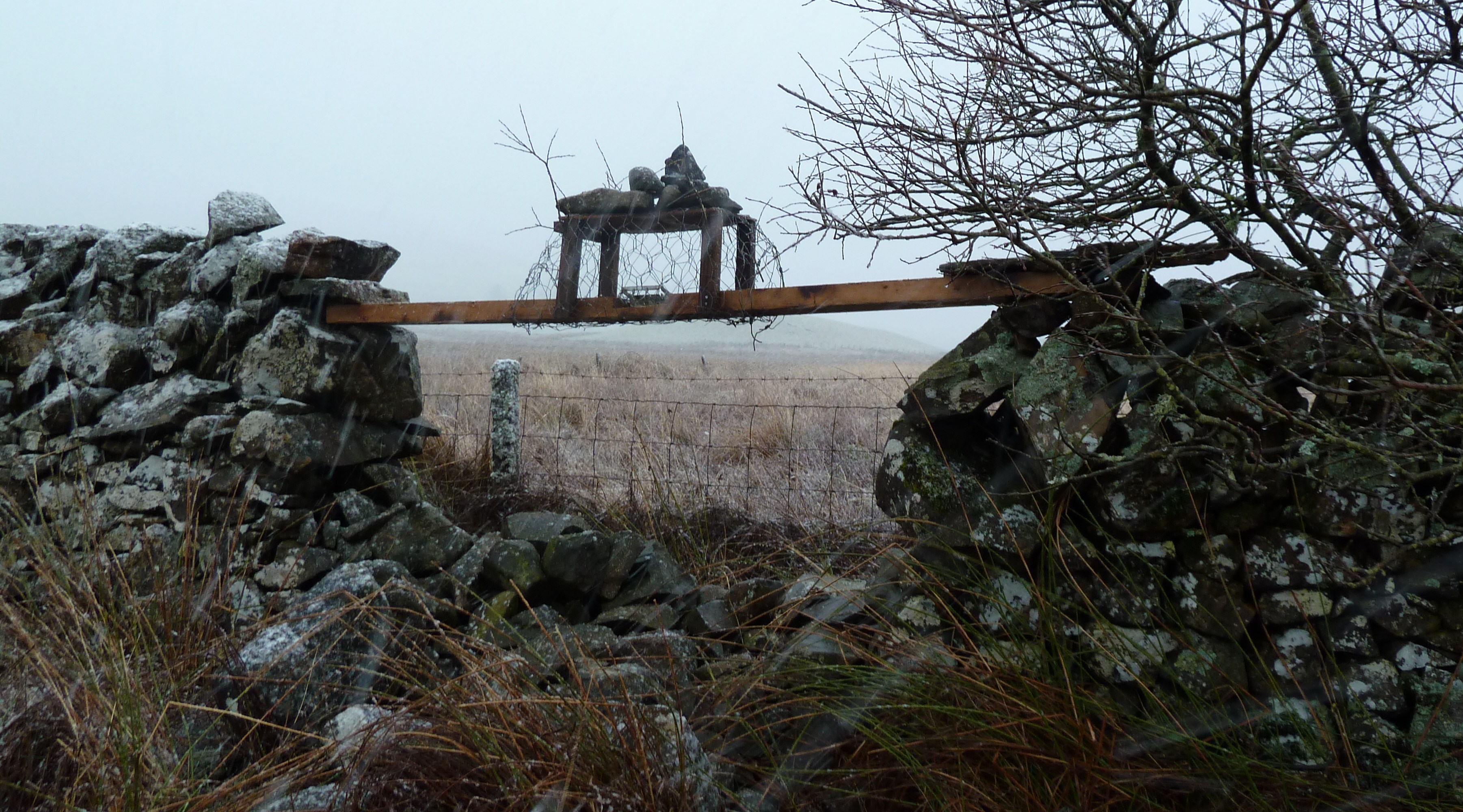 I decided to raise the plank (in the picture above) up into a high point in the wall not only because it is a good place to trap stoats, but also because it is more or less in the centre of the black grouse bog. As the spring starts to arrive, the last thing I want to do every day is trapse through the bog and disturb everything to check the trap, so now I can check it as I drive past less than thirty yards away. Usually, a trap is enclosed only with rabbit mesh, but having an irrational phobia of the blackcock somehow stepping on it with enough weight to crush the wire, I built in a solid roof, which I camouflaged this morning with stones and willow twigs. An unexpected blizzard hit as I was putting the final touches on, but with a few more of these traps around, I can maybe stop worrying about stoats and weasels so much.