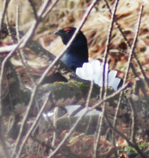 I know that, aside from the period of their moult, blackcock display all year round, but I was not expecting to see my boy lekking this early on. His wattles weren’t fully inflated, and there wasn’t the same patient aggression that you might see in March or April, but I’m delighted to see that it looks like he fully intends to defend his territory for yet another year.