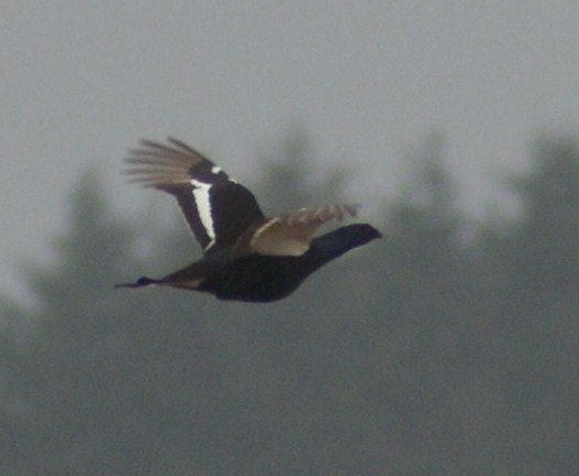 I took this photograph this morning after accidentally flushing my favourite blackcock from a stand of rank heather behind the old farm buildings. He got up with a fair clatter, and was more than fifty yards away before I could regain my senses and get the lens onto him.