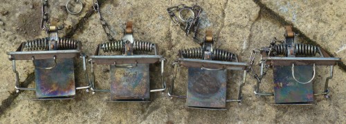 I bought the first batch of traps in November, and had the luxury of time which allowed me to bury them in a pit for two months before use. When I dug them up, they were mottled and had lost every sign of human odour. Since then, they have worked really well for me, but the problem I had with my new traps is that they need to be set up as soon as possible, and two months weathering in a pit is out of the question. Picking up advice from friends, I decided to accelerate the ageing process artificially.