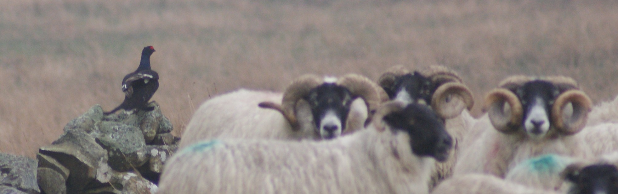 In the meantime, the blackcock continues to lek and sulk all across the tup field. He has incredibly sharp eyesight, which makes photographing him very difficult. This photograph (above) was only taken after a painstaking stalk through a field of curious tups (also pictured).