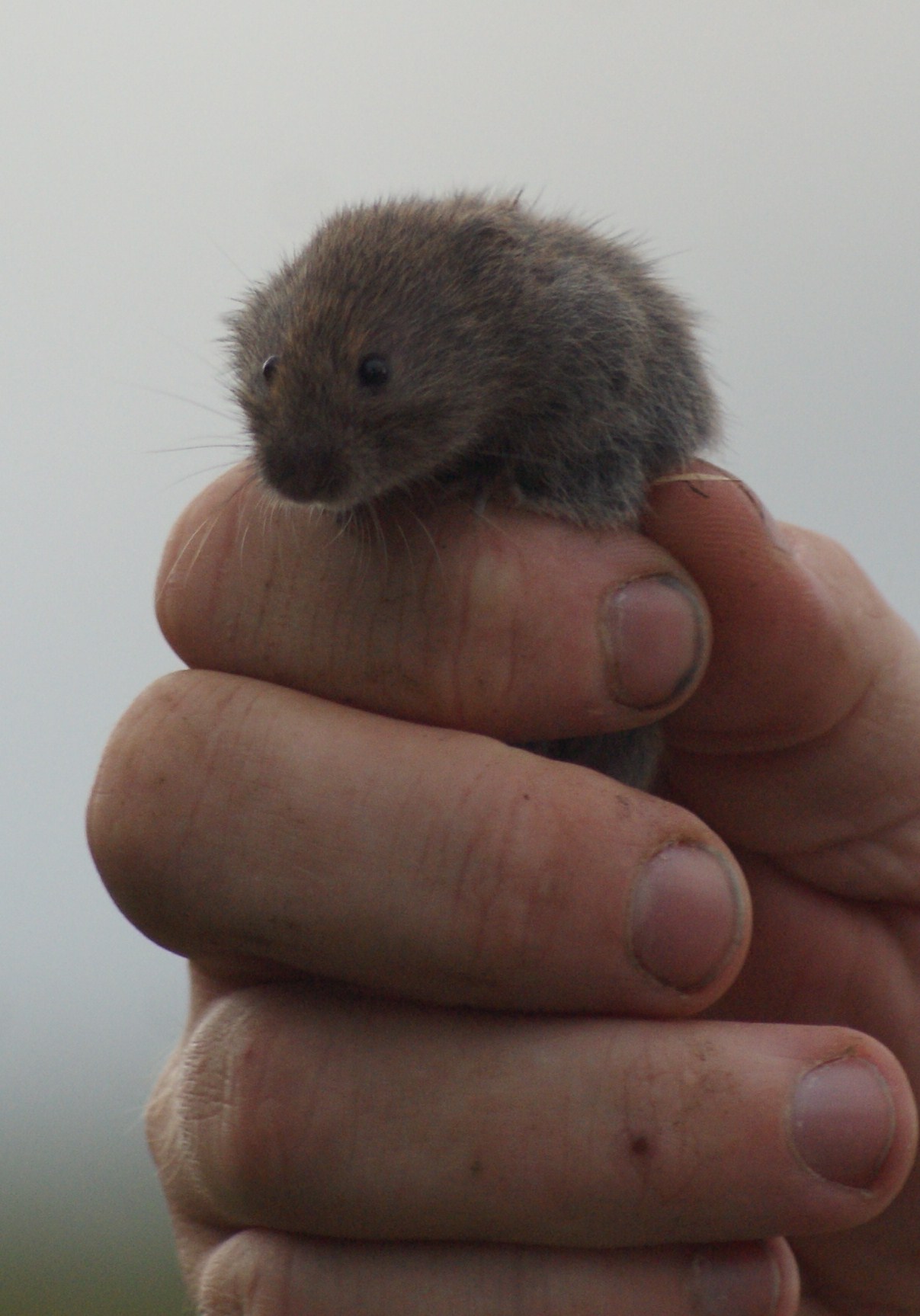 Short tailed voles provide food for every carnivore in the southern uplands, and some species, like short eared owls and adders, base the majority of their menu plans upon these unfortunate beasties. When I found a vole beneath a sheet of corrugated iron this afternoon, I couldn’t resist having a closer look at nature’s whipping boy. He was essentially a fluffy cylinder of calories, passive, inoffensive and just waiting for a stomach to digest him. It seemed hard to imagine that without him and his kin, many more conspicuous species would struggle to survive, but voles perform the vital function of turning grass into meat, and that is his sorry lot.