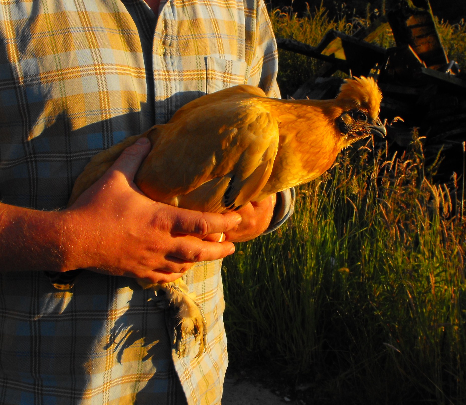 They are curious birds, with silly pom-pom hair styles and attractive honey coloured plumage. Unlike many hens I have come across, they are pleasantly sedate, and I hope to get them to stage at which they can be handled and moved around without too much fuss. Bantams are well known for their efficiency in brooding and rearing chicks, and silkies in particular are often excellent mothers. I’m not wild about poultry, but if these birds perform their function by brooding and rearing black grouse chicks, then I’ve got no doubt that they’ll win themselves a place in my heart.