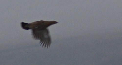 It was only this morning in the half light and the driving rain that I was given a clue as to her whereabouts. Walking up around my traps shortly before sunrise, I flushed a greyhen from the open heather near the top of the hill. There was no mistaking her, and despite having confused her with red grouse before, this time I was totally certain. Her long, chunky tail and outstretched neck gave her away as she battled into the rain, then turned and swept past so closely that I could almost have knocked her down with a tennis racket. She blazed on down the hill, directly towards the field where I had seen her in September, and it was obvious that she was the same bird.
