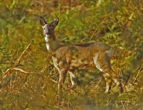 It was a fine clear morning on the Chayne this morning, and despite the wind, the conditions were actually quite mild. Coming back off the hill after visiting my partridge pens, I came across this roe deer in a scrubby stand of pines and bracken. I am getting to know this deer, which is one of three in that area, and it could be that one will come off the hill over the winter. I’ve been looking for a likely freezer filler for a few weeks, so I need to get in and have a close look to see if any of these deer would be suitable…