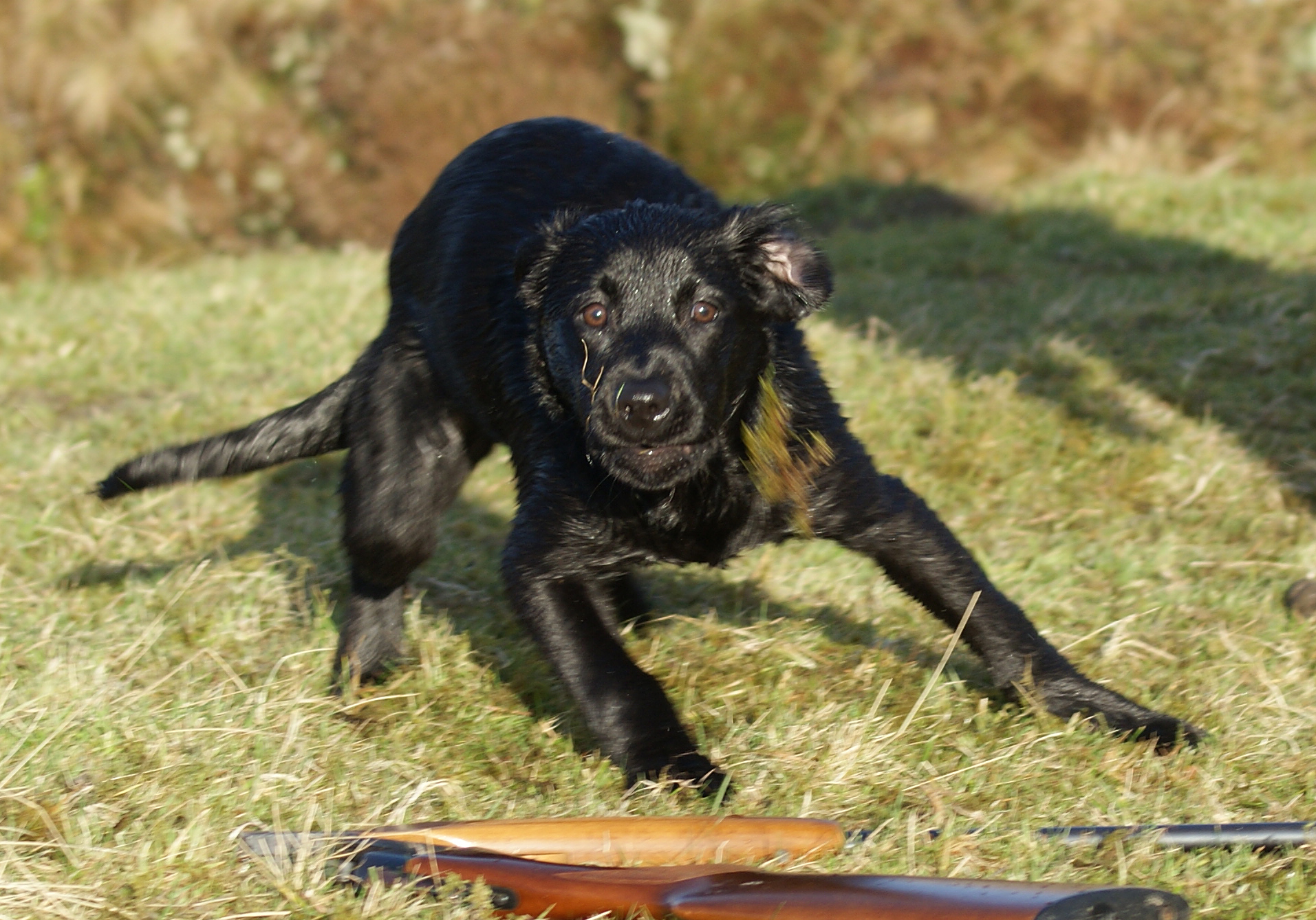 She then spent the next ten minutes tearing around the burnside in an attempt to get warm and dry again. Tucking her bottom under her, she ran around like a mad thing, barking and tossing tufts of moss into the air. The entire experience was viewed as a grand and elaborate joke, so I can say with some confidence that she didn’t learn a thing…