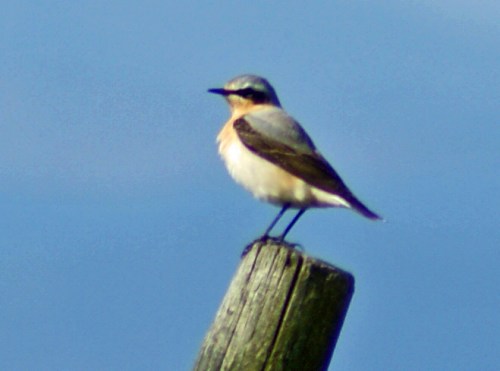 Just to note that I saw a wheatear for the first time this year on the Chayne this morning. That’s not to say that it’s the first wheatear – I have a feeling that they’ve been around for the last 48 hours, but I just hadn’t managed to spot one. A few were seen during the long process of fire fighting earlier in the week, but since we weren’t on the Chayne, it didn’t count. There have been reliable reports of birds in Britain for the last fortnight, and some of them seem to pass straight over Galloway on their way north. A reader of this blog wrote to tell me that he had seen three wheatears up in Angus six days ago, so perhaps my birds are actually a little slow when it comes to returning.