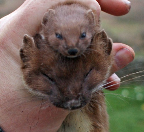 I caught a stoat for the first time in a three months today, and I found that a few yards along the same dyke, I had also caught a weasel. You don’t often get a chance to see stoats and weasels together, and it made for an interesting comparison. I featured a picture of a weasel and an ermine that I caught in the same day in March last year, but with both in comparable coats, I took the above picture, if for no other reason than an attempt to lay the weary bones of the “stoatally” joke to rest at last.