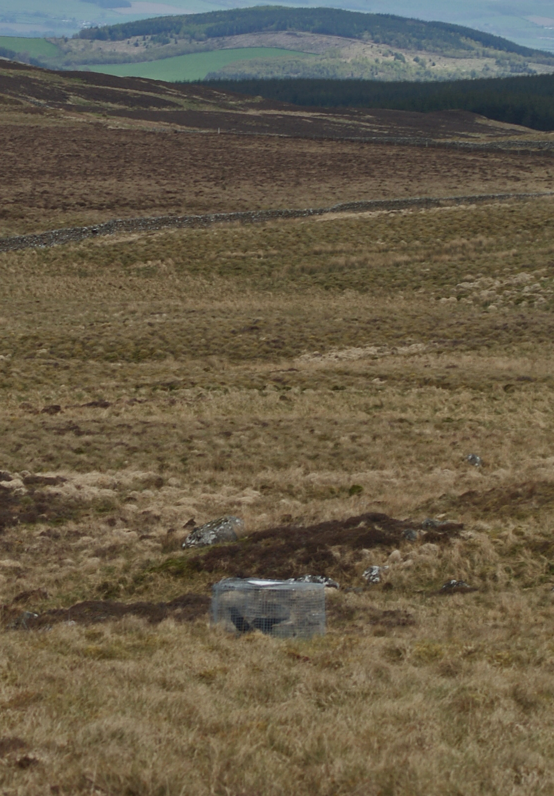 Now’s the time of year to be getting stuck into the vermin, and yet again I’m reminded of how difficult life on the Chayne is without proper roads, tracks or access of any sort. Two weeks ago, I carried a multi larsen trap on my back two miles across the hill and left it in what I imagined was a decent spot. A small stand of larch trees nearby gave crows a great lookout point, and open country all around was not only good for their security but also represented a two thousand acre dinner plate, full of eggs and chicks.