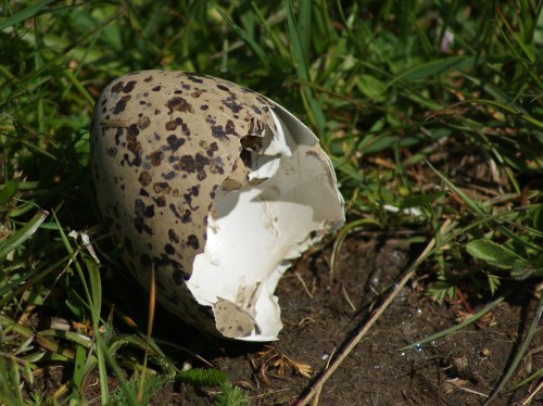 As if to endorse yesterday’s post about the importance of crow control, I found this empty oystercatcher egg by the side of the loch infront of the house this morning.
