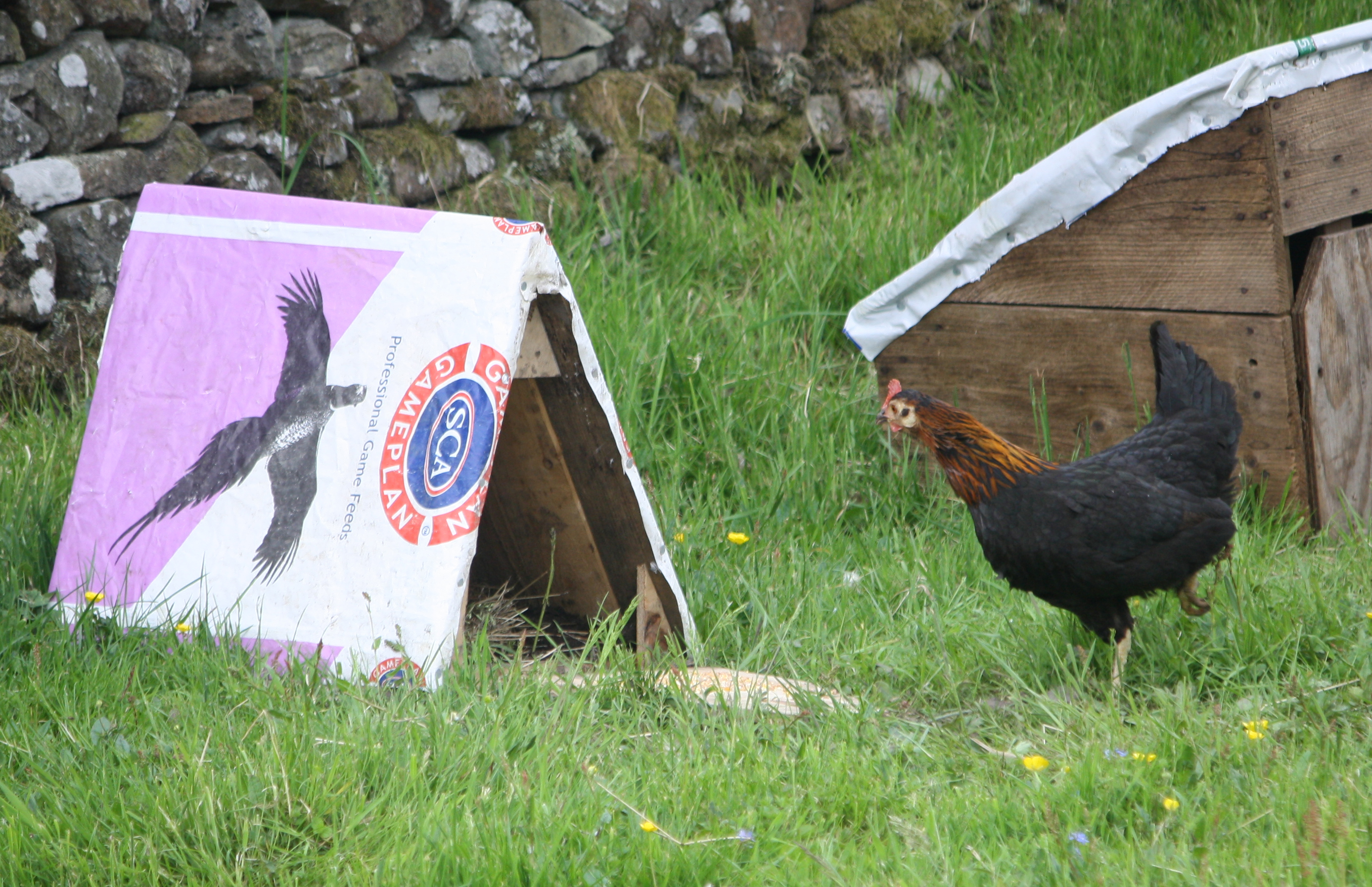 I get my broodies up at the same time every morning and let them out for a feed and a shit, but one of them just won’t play ball. She used to belong to a shepherd down by the Solway who was famous for having savage collie dogs. As part of their struggle for survival, all of his hens were as wild as the heather – they needed to be, otherwise they would have quickly become dog meat. When he threw in the towel with poultry keeping (possibly because his hens went feral and began laying in hedge bottoms miles away from his house), my mother managed to catch a couple and take them for herself. Over the next couple of years, the handful of rescue bantams mellowed alot, but always kept their wild streak.