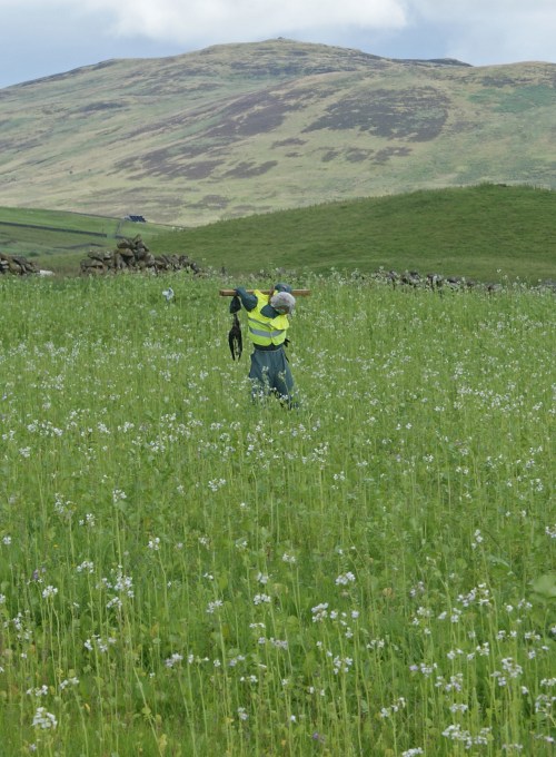 In amongst the game cover, the bee mix is starting to crackle into life with spots and blots of colour at around ankle height. The phacelia and borage are coming through brilliantly, and there is a noticeable concentration of butterflies and insects on the field. I suppose that providing a general boost to the local wildlife was the aim of the game from the beginning, so I can hardly complain. I just hope that something steps into the breach and bushes out, because things are looking pretty sparse in the meantime.