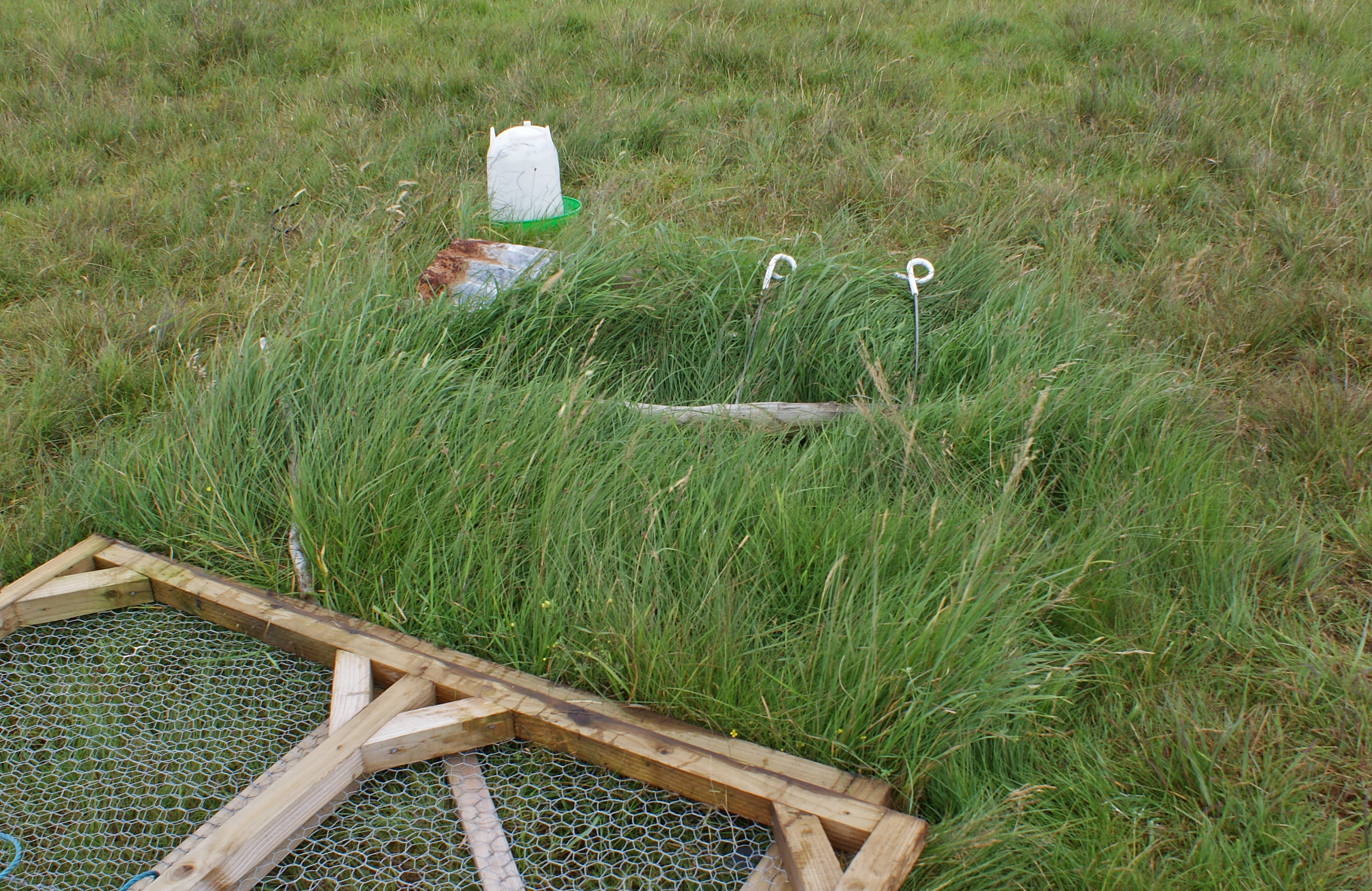 As soon as the trap was down, I saw what a difference had been made to the undergrowth by a spring and summer without grazing. By comparison to the heather laboratory (more on this to come, too) which was built mainly on a stand of heather, the trap had been set up on a mix of heather and grass. As the picture (above) shows, the summer without grazing has done nothing more than grow the grass up, which in turn has smothered the heather and blaeberry mix into non-existence.
