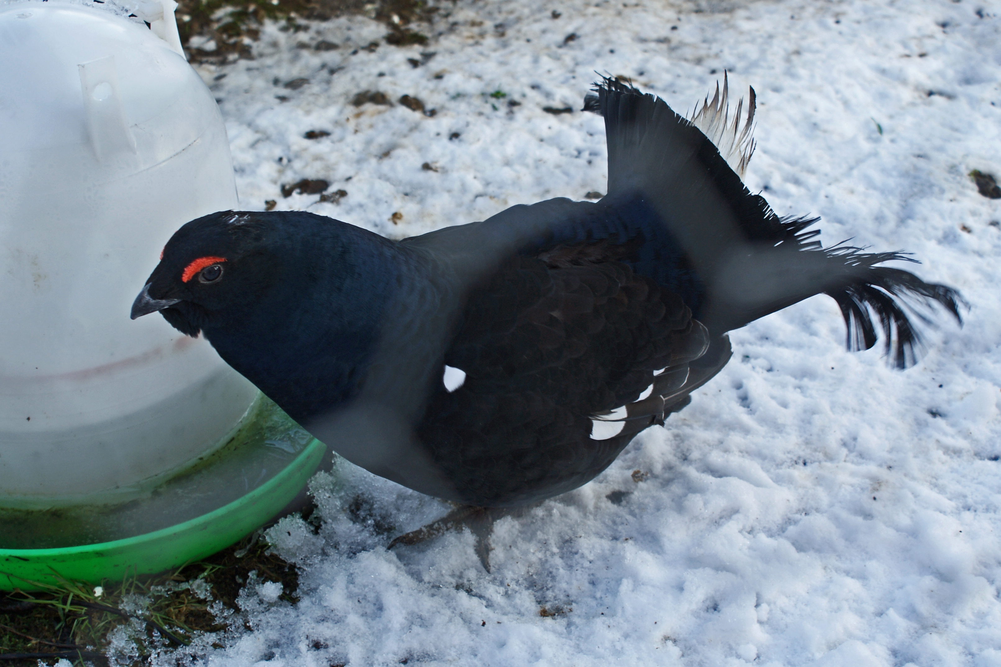 Having posted last week about my pet blackcock’s apparent reluctance to lek properly, I now have the pleasure to report that all is well in the display department. I noticed that he was out and about just before lunch today, so decided to take the opportunity to play him a recording of lekking blackcock which I found online and posted on this blog a few months ago – (again, if you get a chance, do have a listen).