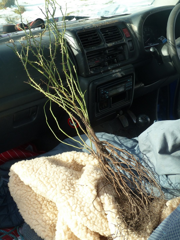 Now that the new stretch of hedge has been made stock-proof, it’s time to think about what I’m going to plant in there. I had always planned on a predominance of hawthorn and blackthorn with the odd rowan, but it’s just too good an opportunity to try out some new species. After all, this new hedge will be the first of many on the Chayne and it would be a shame to overlook something which really thrives up there just out of pure lack of imagination. This first stretch of hedge needs to be as thick as a brick wall, full of food bearing species and not so high as to encourage birds of prey. Given that it will be planted on what was until last week a fairly decent bit of arable field, there is room for a great deal more flexibility than if it were further up on the peaty hill, but the fact that there are still frosts until May on the Chayne may restrict me a little bit. Ideally, this will be a perfect hedge for partridges – providing good cover, a south facing aspect and an abundance of food. Any species that helps me achieve that goal is very welcome.