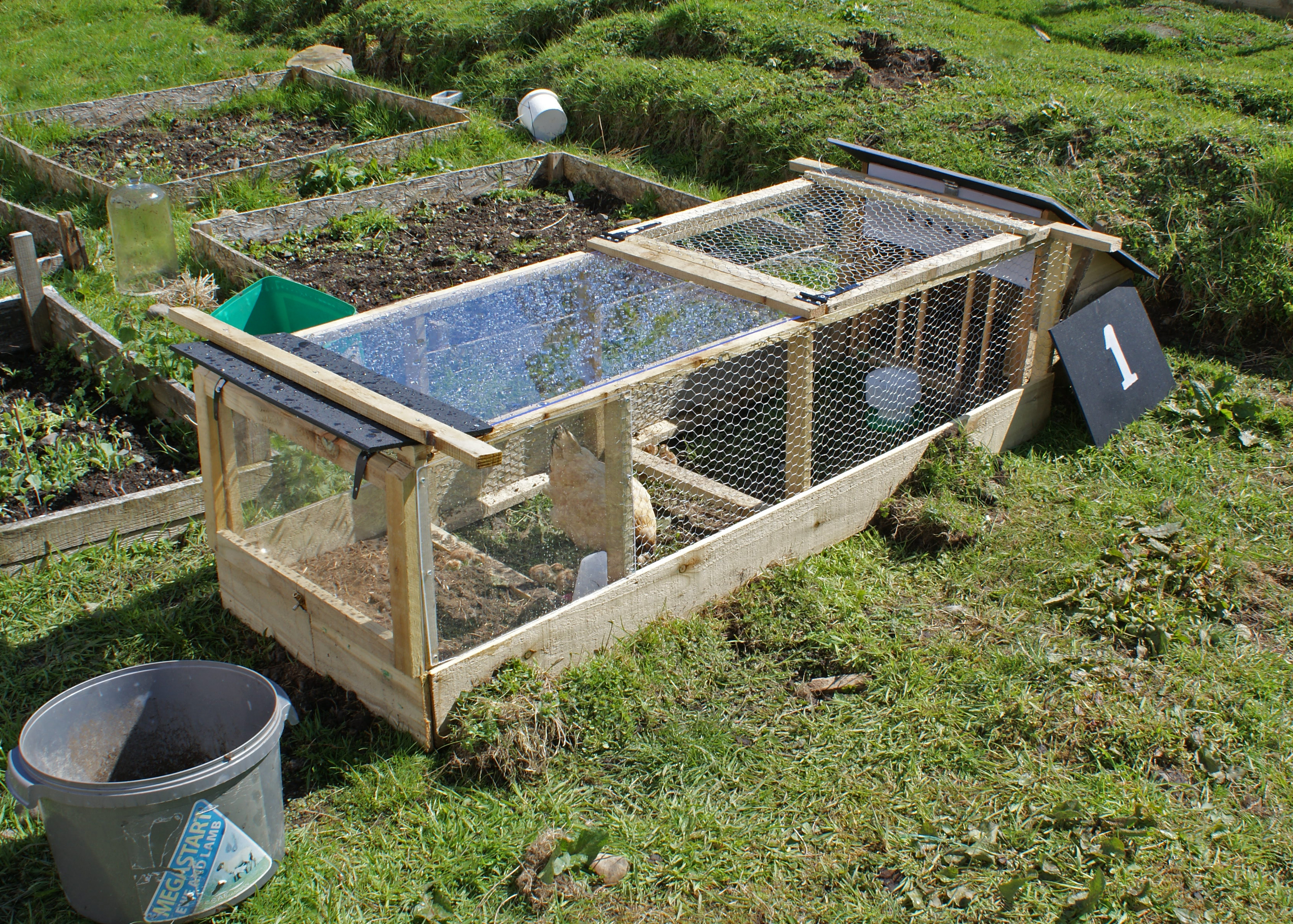 The new run is half glazed with perspex (obscenely expensive) to create a mini greenhouse at one end. The floor of the greenhouse is solid plastic and has been turned into a dustbath using soil from the old hayshed where the hens go to dustbathe. I thought that the broodie would enjoy a bath after her time in the sitting box and coop, but it has actually been even more popular with the partridges themselves, who, at a week old, have been keenly bathing themselves under the perspex roof while hail clattered down outside. I love the idea of half-perspex runs, but this little building project has cost me almost £50. With six more broods on the way (one of which hatched this morning), I simply can’t afford to roll it out for everyone.