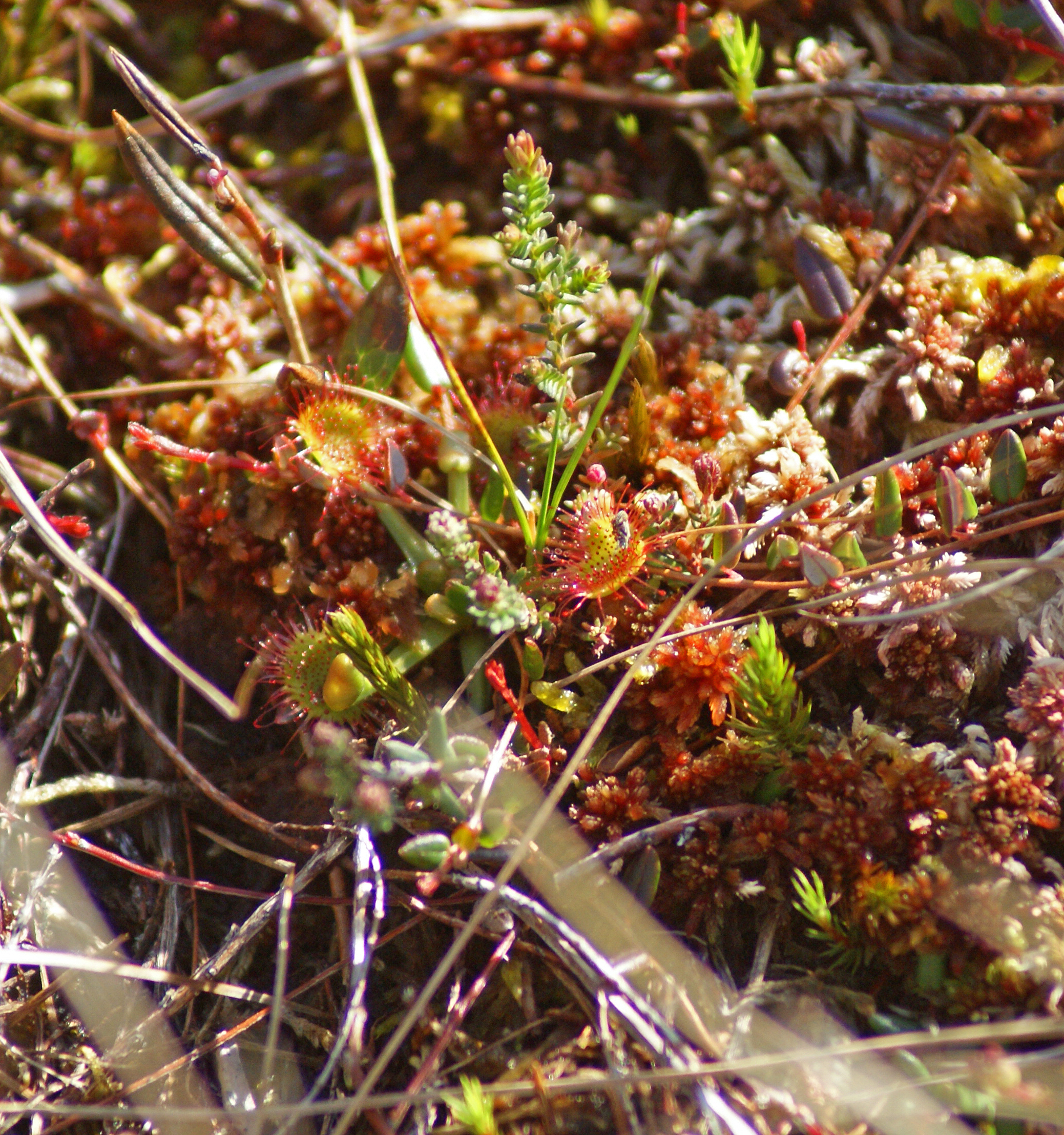 But bog cotton is just the thin end of the wedge. I took a photograph of a young sundew plant growing on an area of recently sprayed and mowed heather at Langholm (above), and it was only when I got home and examined the image on the computer that I also spotted bog rosemary, blaeberry and cranberry, as well as heather and sphagnum plants which both look to be “in the pink” after the treatment. The seeds of these plants clearly respond well to management, and indeed it’s hard to imagine such a great diversity either on grass dominated moorland or in unmanaged rank heather. There’s no question that this form of management produces results which go far beyond the stereotypical “more heather, more grouse” attitude which is popularly associated with shooting in the uplands, and it seems decidedly at odds with the idea of “barren” and “bare” moorlands which seems to be receiving attention just now in the media.