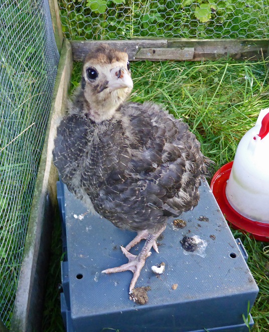 Just worth including a photograph of one of the Christmas turkeys, which are now almost six weeks old and appear to be going from strength to strength. They are starting to behave more recognisably like turkeys, and the velvety down on their heads is starting to thin, revealing pink scalps underneath.