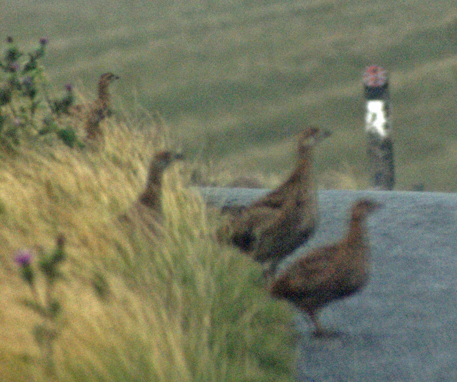 On the cut silage field opposite the Langdon Beck Hotel, a greyhen and three poults fluttered in as the rain faded out, and I sat and watched them for some time before the clock caught my eye and I had to rush on southward.