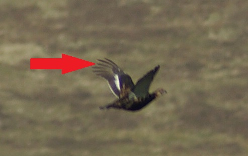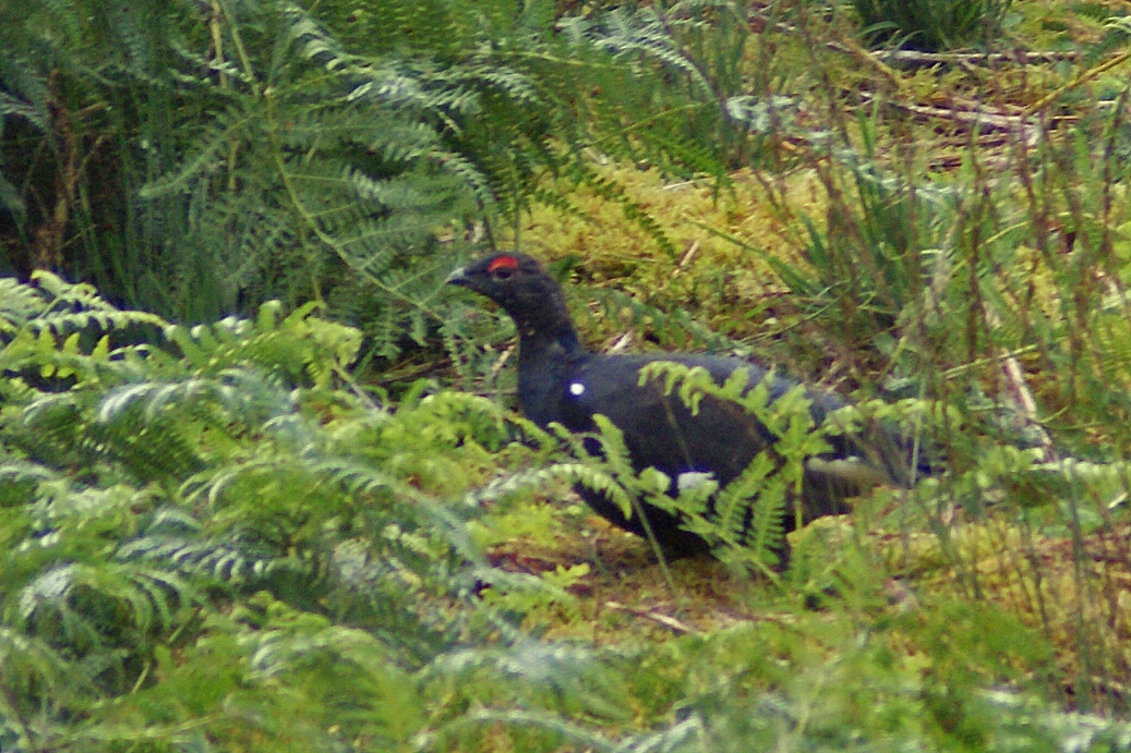 Just as point of interest, I took this picture (below) of a young blackcock as it flew off after being disturbed this afternoon. Although the bird is rather blurred, the camera has serendipitously captured the left wing with with crystal clarity, revealing that black grouse can be aged by their primary feathers just like red grouse. The third primary is considerably shorter than the others, indicating that this is a bird of the year. If it wasn’t for the conspicuous brown juvenile feathers on what is so obviously a young blackcock, information like this would be quite useful.