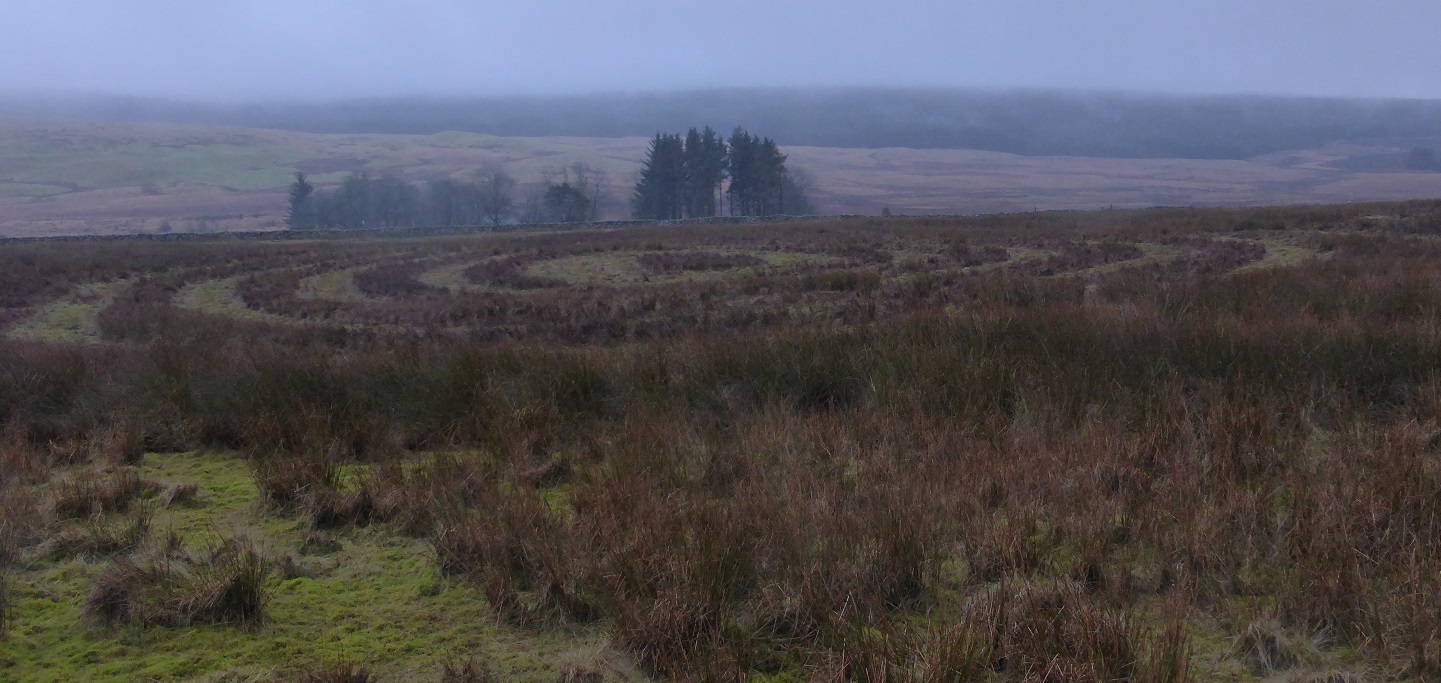 While walking the dog and checking some traps on the Chayne in the rain this afternoon, I wandered past some of the cuts I put into the rushes in September with the tractor. So much of the cutting theory designed to be used on heather for grouse also works for waders in wet pasture, and I have high hopes for this enormous snail’s shell which I cut into a very thick sea of rushes and tussock grass in the last days of the summer. Unlike heather, these cuts need to be renewed almost every year, and some areas will have to be cut again before the curlews and snipe start to breed. It has been so mild this winter that the rushes have grown more than eight inches up from their stumps since they were cut, despite the fact that they are supposed to be lying dormant during the short days.