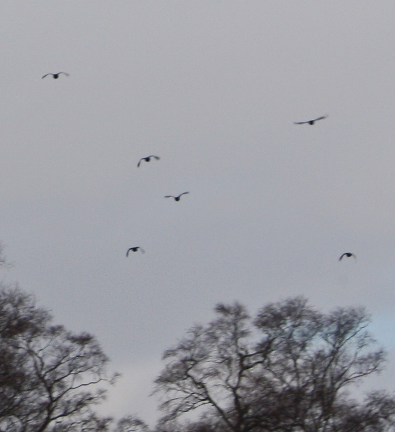Most exciting of all was the sight of a tree-full of blackcock a couple of miles North of the House of Bruar, above the junction to Struan and Calvine. This is the heart of Perthshire blackgame country, and some of the best leks I have ever seen have been between this point and west towards Loch Rannoch. Perhaps fifteen cocks were crowded together in the purply branches of a silver birch tree just a few yards off the road, and I turned around at the next junction to give them another look. Fortunately, my girlfriend was in the passenger seat with a long-lens camera, and although the blackcock were up and moving by the time we came back past, she did manage a couple of snaps.