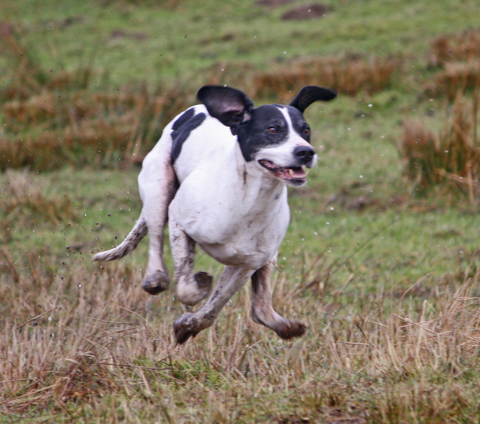 Worth posting this photograph of Oscar the pointer which my girlfriend took this afternoon in the miserable rain and high winds on the Chayne. The shepherd has been seeing a bird which I think can only be a greyhen on a totally different area of the hill, far away from the usual red grouse haunts and adjoining the woodcock strip. I’ve had my suspicions about this area for some time, and it was well worth a look with the dogs. Unfortunately, there was nothing to be seen aside from a merlin which sat and watched us from the top stones of one of the old grouse butts as we splashed through the moss. I will keep an eye on this patch over the next few weeks, because there is some good brood rearing habitat in this area, and it would be a good thing if there was a black grouse or two in there.