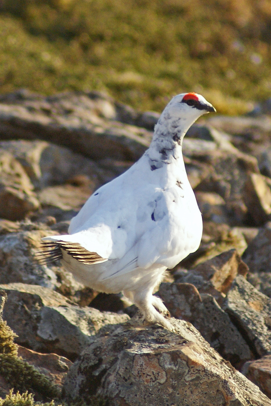 Worth commemorating the fact that I managed to get up over Glenshee on Tuesday afternoon after running some errands in Perthshire. Heading up from the ski centre is always a mixed blessing, with the roar of the ski lifts, the grind of the piste bashers and the whoops and chatter of snow enthusiasts. On the plus side, it is a fast and easy means of accessing alpine conditions within an hour’s drive of Perth and after just a short half hour walk. I will cover the birds and beasts in more detail in due course when I get a moment, but I thought that it was worth posting this photograph of a ptarmigan cock which the dog disturbed from a bank of exposed scree on Meall Odhar. In a moment of comparative stillness and peace, the little bird scraped and rattled beautifully amongst the stones before taking to the breeze with his hen and following the contours out of sight to Aberdeenshire, where, after a stunning day of clear sunshine, the smoke from heather fires was just starting to dissapate for the evening.