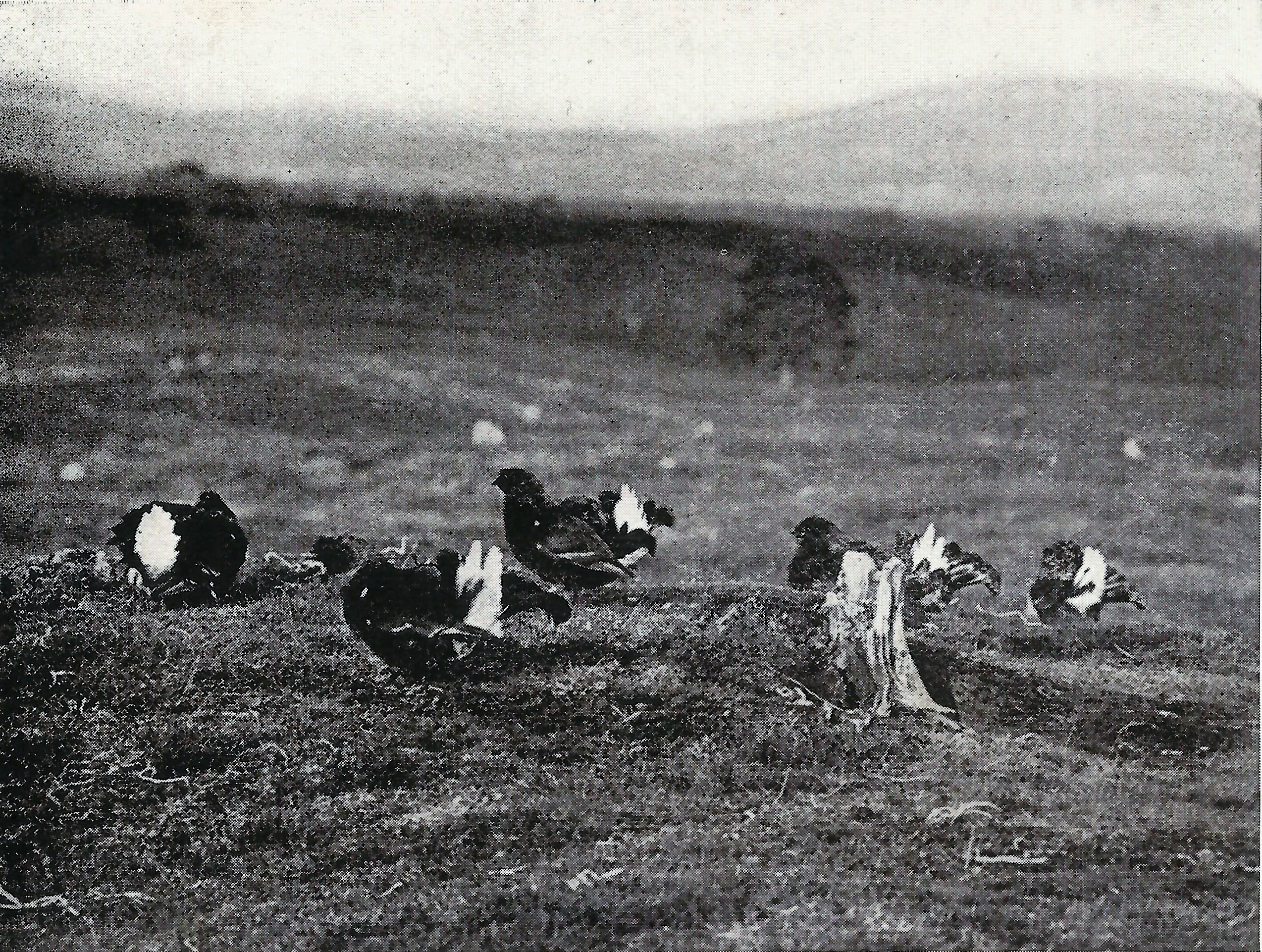 Interesting to be sent this photograph by a friend which was taken from Seton Gordon’s 1938 book Wild Birds in Britain – The picture appears to have been taken on Deeside where the birds today remain in some considerable quantity, but while the blackcock themselves are pretty stirring, more notable is the countryside they are in. Lek sites vary across the country and blackgame usually favour somewhere with a bit of short grass or heather to display upon, but judging by the backdrop to the photograph, there is little in the way of decent cover as far as the eye can see. With the exception of the odd scots pine here and there, the hills are just open moorland.