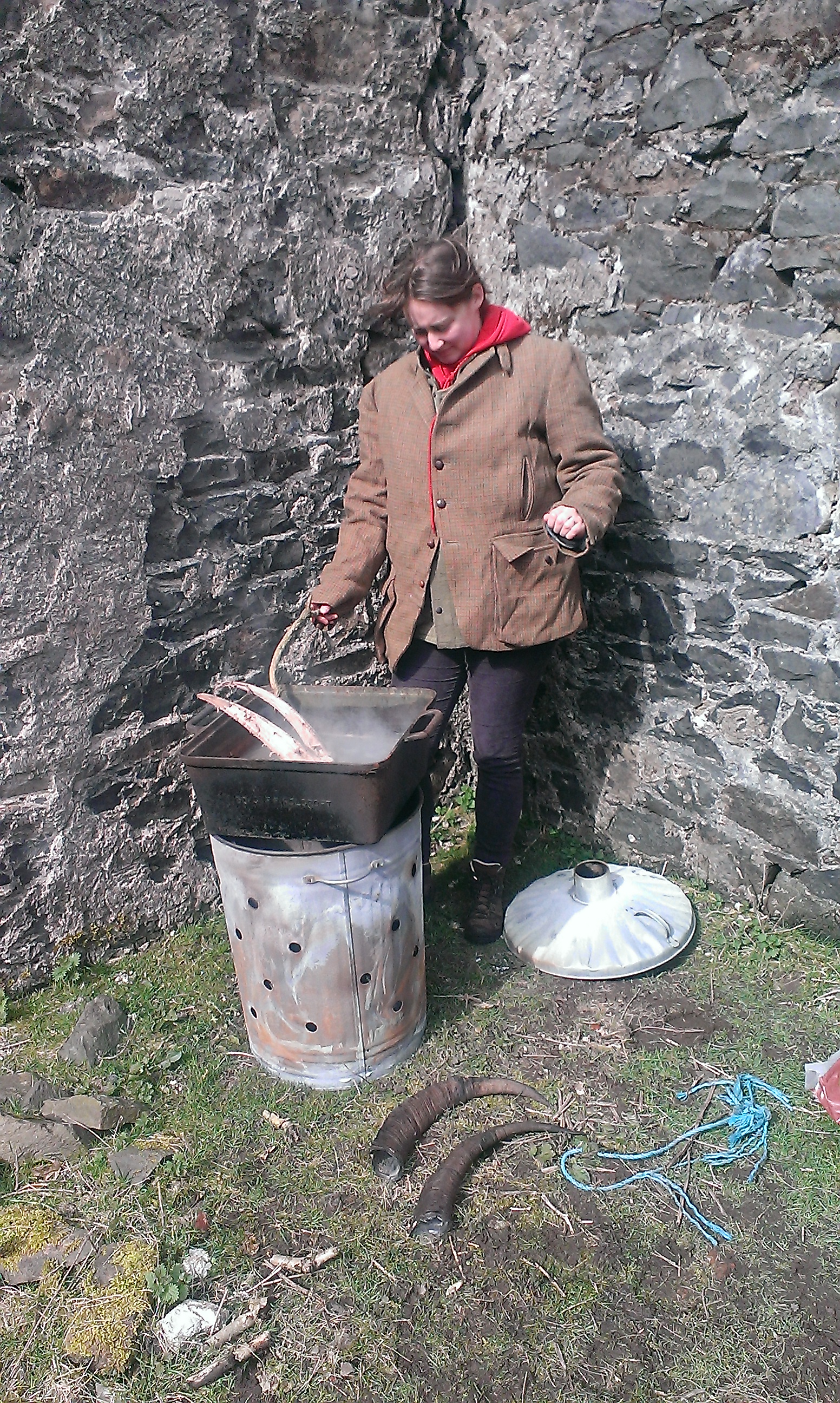 The horns will look great when they have been properly cleaned and treated, and I started that process this afternoon by boiling off the dense pad of forehead gristle which was binding the horns to the skull. My girlfriend is a chef and obviously understands such things, so she was enlisted to see that the goat stock was boiling up nicely. She periodically prodded the festering stew with a twig, stirring up the rancid emulsion of fat and matter. If anything, the smell got worse before it got better, and particularly vile was the grey crowdie which materialised from the sinuses as soon as the skull was turned for the first time.