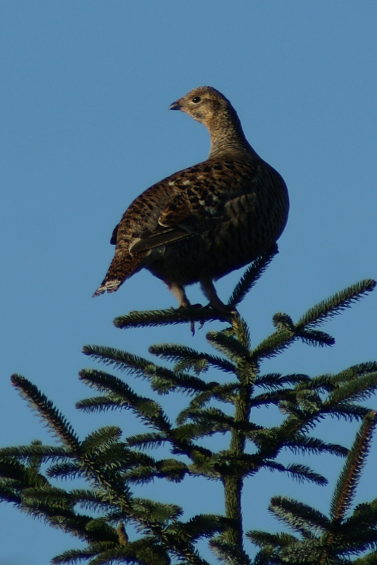 It was obvious that the greyhens preferred the high points so that they could keep track on the cocks, since direct comparison was impossible from ground level. And yet all this confusion was taking place with sight of half a dozen areas of open ground which would have been perfect for a communal lek in any other circumstance. They were choosing to display in such an awkward spot, and the rolling, frenetic nature of the display flew in the face of almost every other lek I have seen. These birds were like Scandinavians, and while they clearly spend a lot of time on the open hill, they had chosen this cramped, awkward corner to perform a lek that was so obscure and overcrowded that it seemed perverse. All the while, the liquid, slurring phrase of countless willow warblers grew into an incessant, almost heady backdrop.