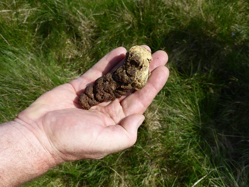 It may be that there are readers who are unfamiliar with the concept (or even the name) of clockers, so it is worth mentioning that these are the massive droppings left by broody birds when they come off the nest. Black grouse produce prodigious quantities of droppings under normal circumstances, but a sitting hen can only move her bowels once a day, and sometimes even less than that. It should be no surprise then that when she can make it off, the result is so resoundingly enormous.
