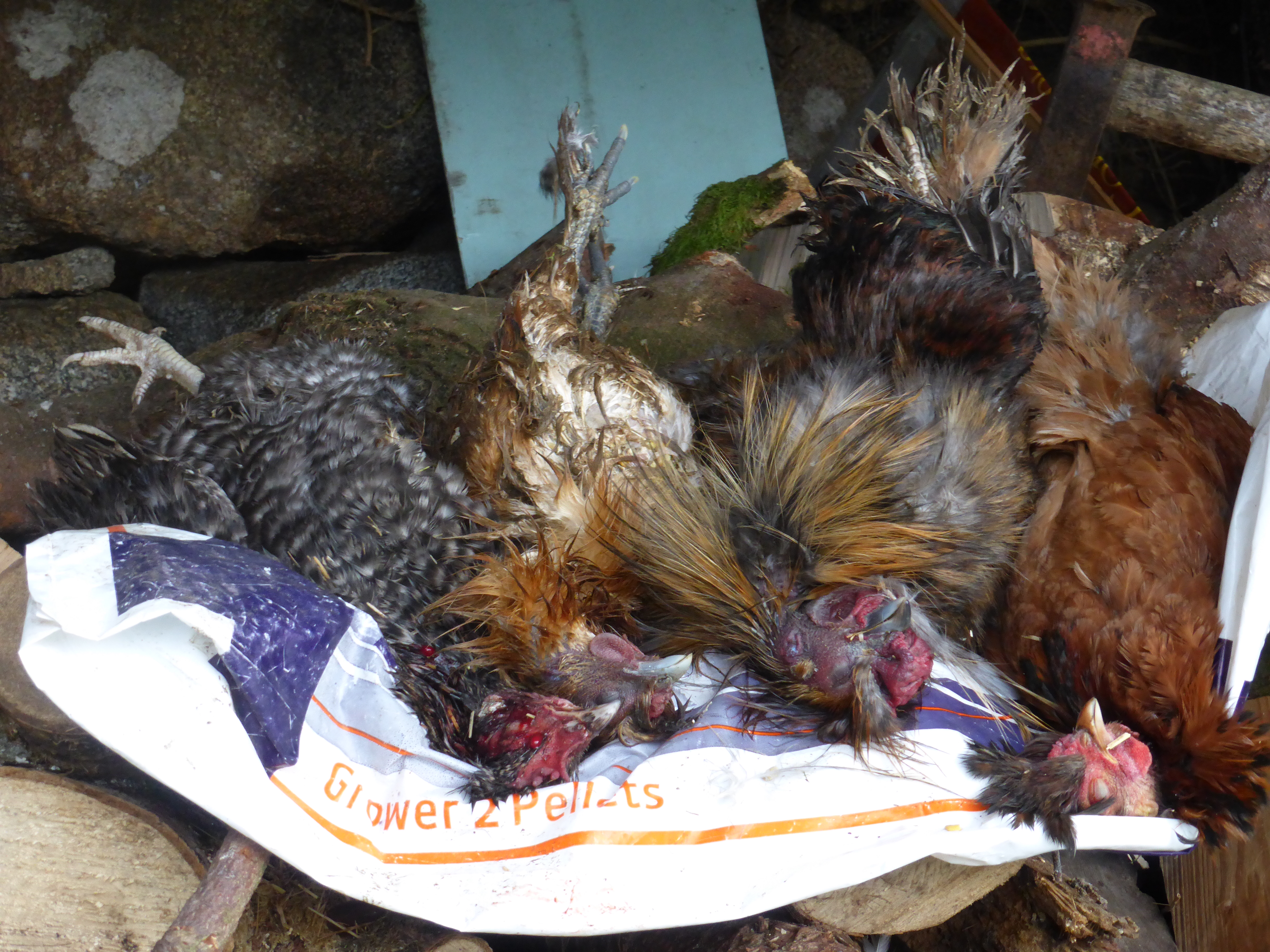 The cockerel’s head had been crushed, but in the swirling darkness it would have been impossible to see what was where and for how long. The dog ran purposefully off into the icy rain as we tried to identify the silkies from their matted, rain soaked remains. There was an almost perceptible after-glow of the fox’s presence hanging in the sleet, like the bright shadows which continue to dance even after the welding torch has been extinguished – I looked at the feathers and pictured him there at my feet, just a few yards from the back door. As much as I wanted him dead, I couldn’t resist an equal measure of excitement and delight amidst the anger.